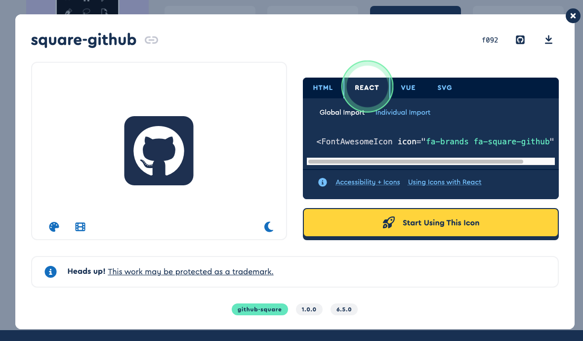 github를 검색해서 가지고 올 아이콘을 클릭해준다.