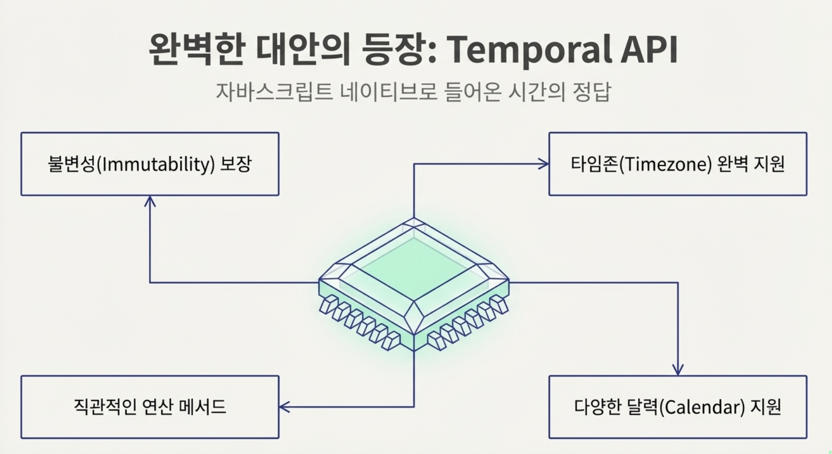 이를 해결하기 위해 Moment.js나 Day.js 같은 외부 라이브러리에 의존하며 기술 부채를 쌓아왔다.